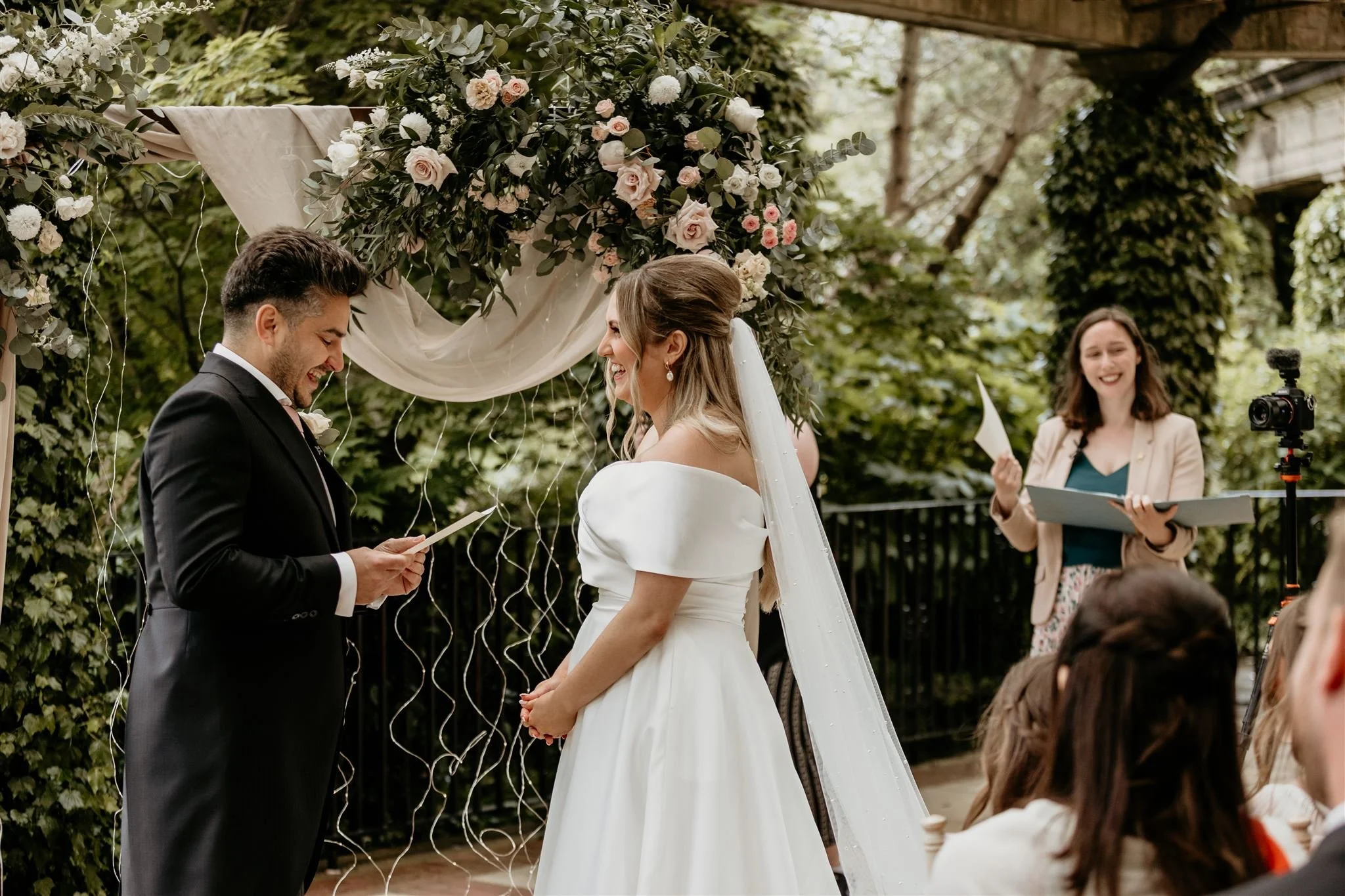 A humanist wedding celebrant (not to be confused with an independent celebrant) performs a non-religious service that puts you two front and centre. That could be your own stories, readings, soundtracks, or whatever makes your relationship special.